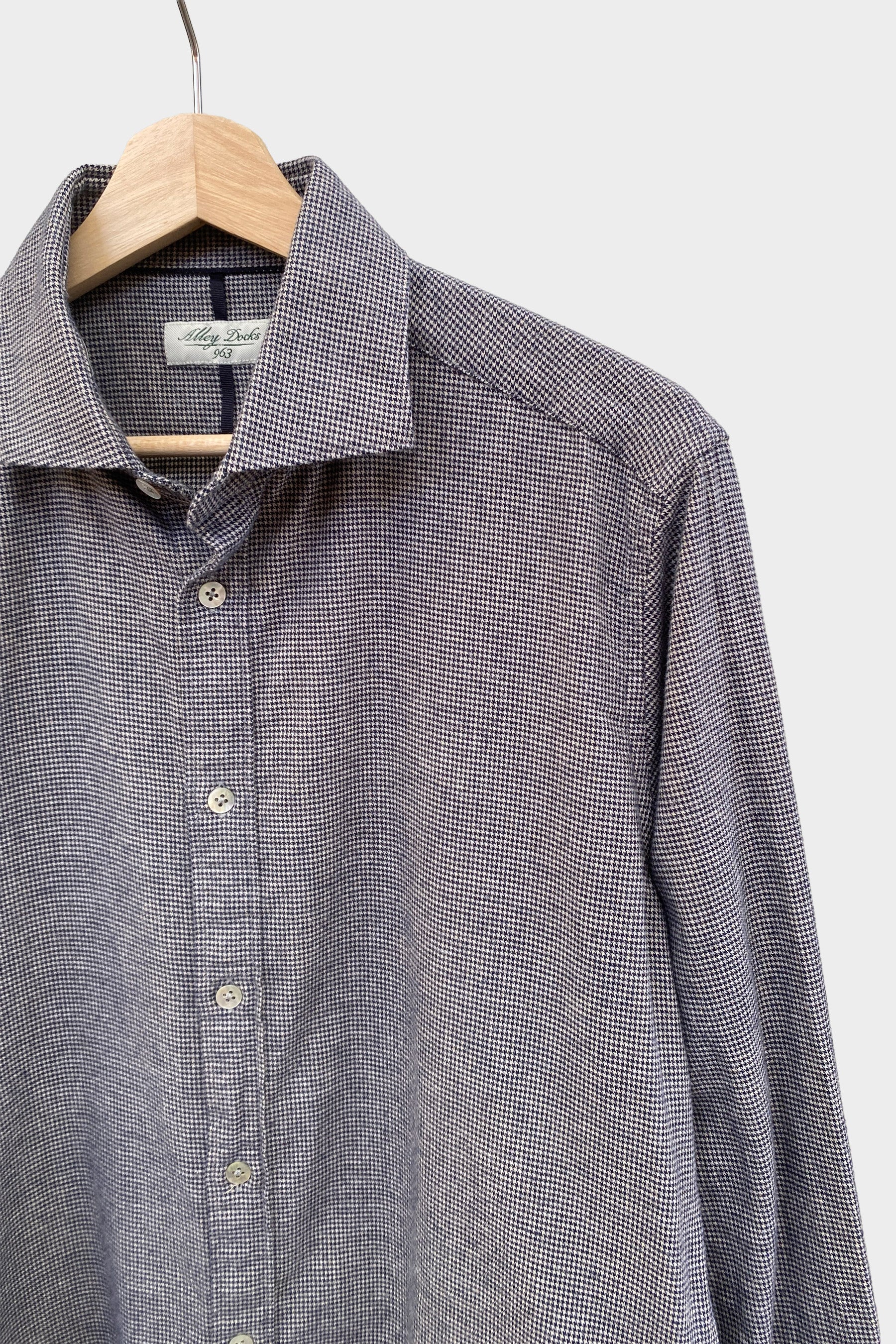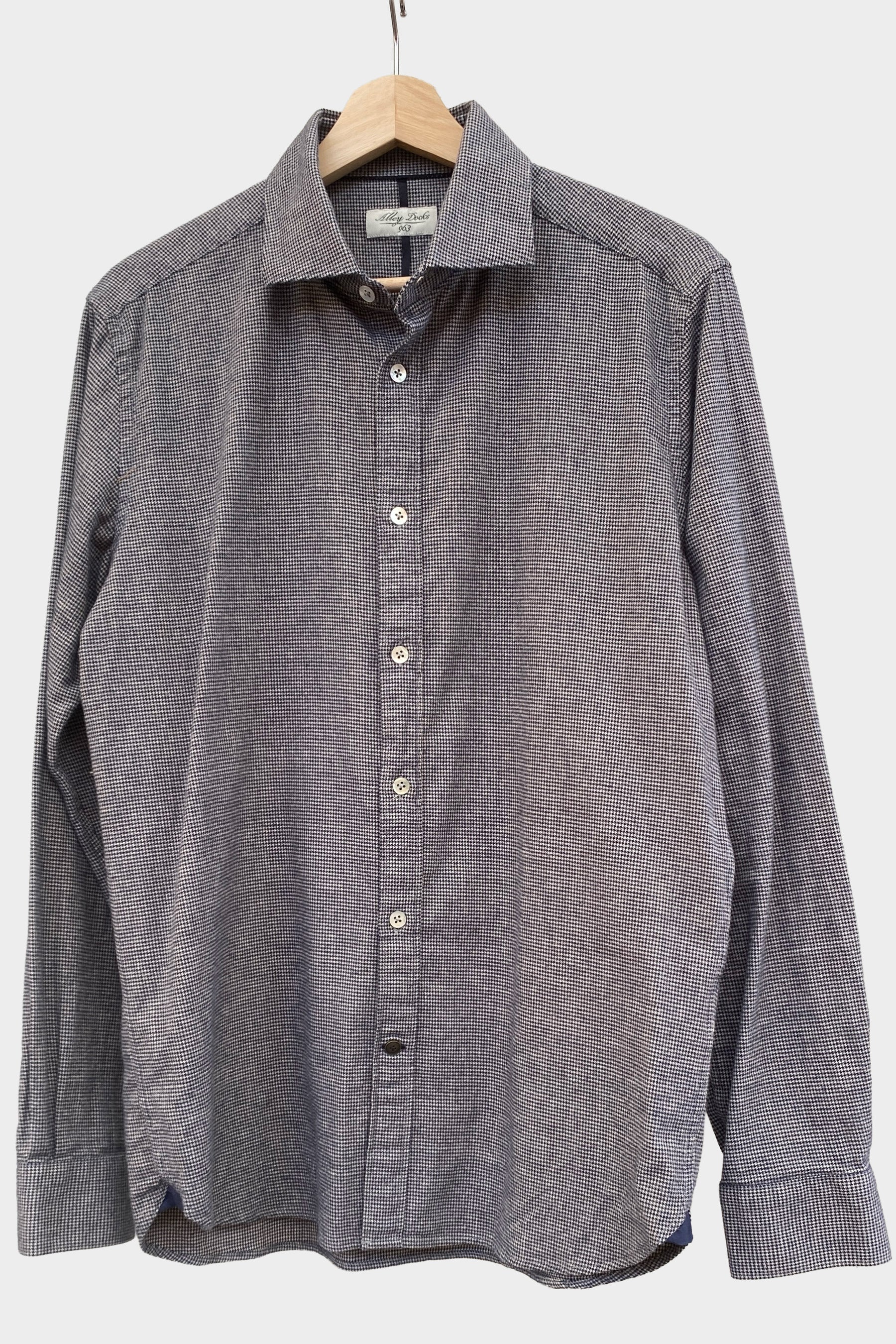 Alley Docks Camisa de franela mini pata de gallo gris y azul oscuro
