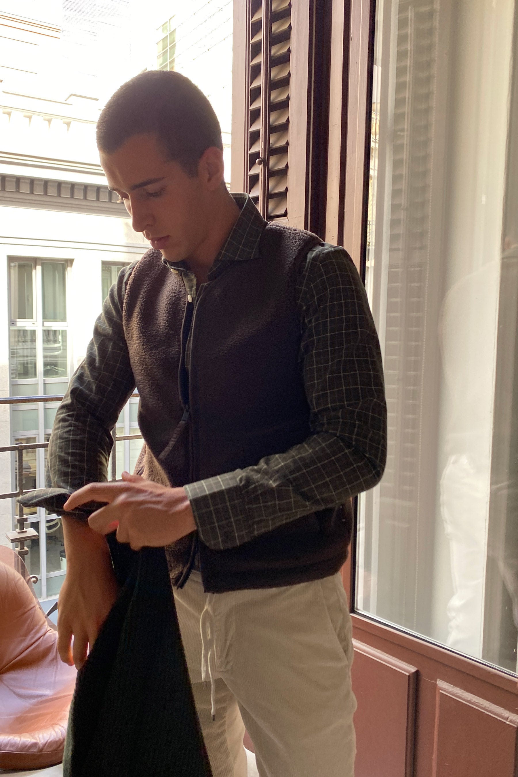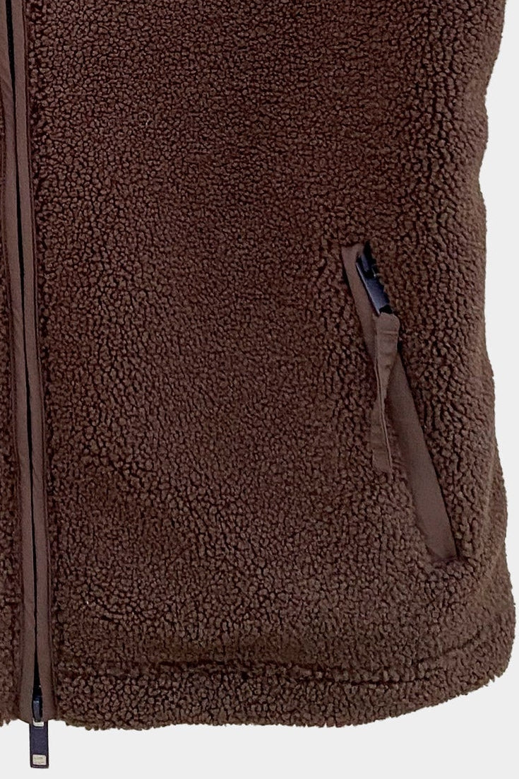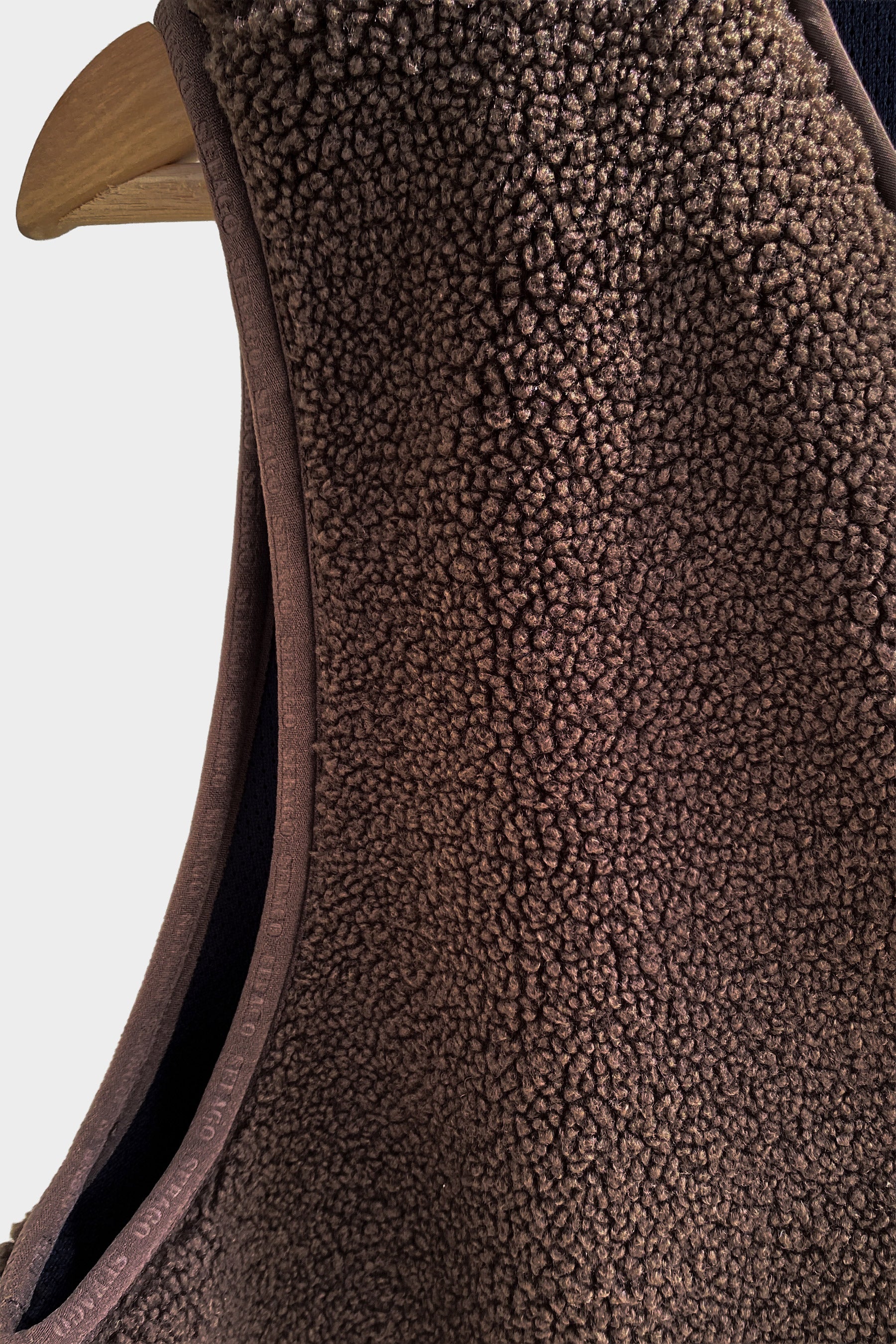 Una prenda fácil de poner sobre una camisa o debajo de una chaqueta durante los meses más fríos, está confeccionado en forro polar sherpa con un forro interior de micromalla color azul marino. Cierre de cremallera en doble dirección azul marino, con remates en las terminaciones a tono. Lleva bolsillos con cremallera y un bolsillo interior en el pecho.
